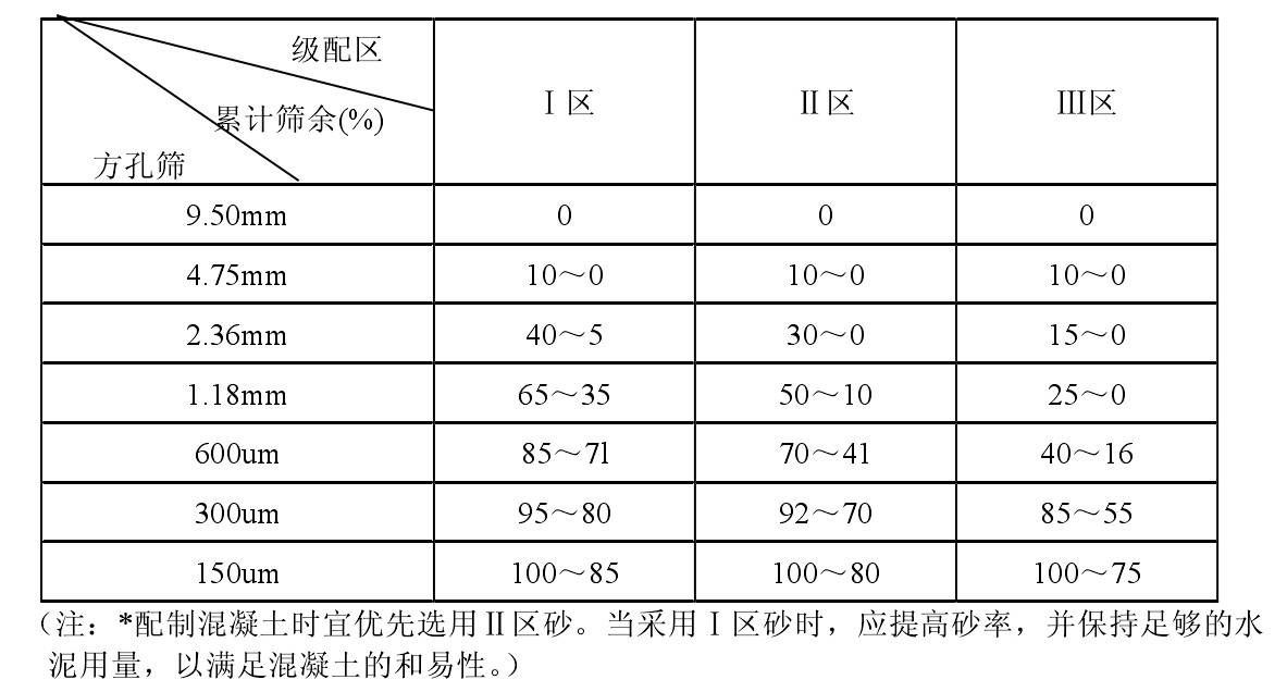 (4)顆粒級配:人工砂按600um篩孔的累計(jì)篩余量(以質(zhì)量百分率計(jì),下同)分成三個級配區(qū),其顆粒級配應(yīng)處于表中的任何一個區(qū)以內(nèi)。機(jī)制砂的實(shí)際顆粒級配與表中所列數(shù)字相比,除4.75mm、600um篩檔外,可以略有超出,但超出總量應(yīng)不大于5%。